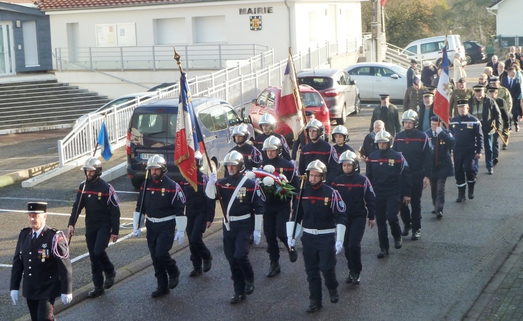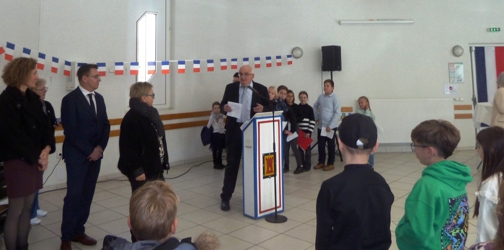 La commémoration de l’Armistice de 1918, qui rassemblaient les élus et les représentants des associations locales de Falck et Hargarten-aux-Mines, a eu lieu ce mardi 11 novembre 2025 dans notre commune. Après la levée des couleurs, devant la mairie, le cortège des officiels a pris la direction du Monument aux Morts sous les ordres du Lieutenant KRAEMER, commandant l’Unité Opérationnelle des sapeurs-pompiers de Falck-Hargarten. Après le dépôt de gerbe suivi de la minute de silence, la Messe pour la Paix a été célébrée à l’église paroissiale par l’Abbé Cosmas EGBIGLI. A l’issue de la cérémonie religieuse, les participants se sont retrouvés à la salle polyvalente où le message de Mme VAUTRIN, ministre des Armées et des Anciens Combattants, a été lu par plusieurs enfants de notre école. Le traditionnel vin d’honneur, offert par la commune, clôtura la journée. Notons, pour la petite histoire, que cette manifestation constituait la première sortie officielle de la nouvelle municipalité de Falck, menée par M. SCHROEDER, le nouveau maire.